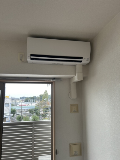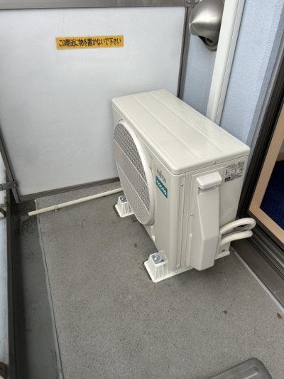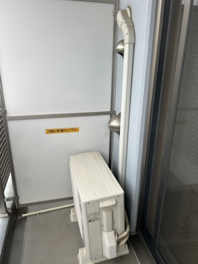 室外機はバルコニーに直接置かれており、オーソドックスな施工完了でした。
