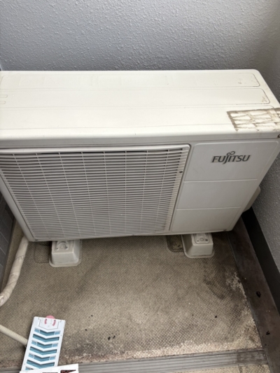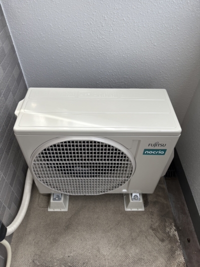 室外機の設置場所が重要で、今回のお客様はバルコニーに設置されておりました。(バルコニー、地面に置いてあるお宅が多いかと思います。)
