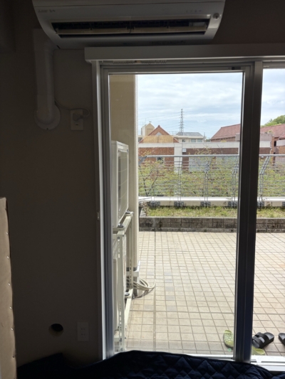 窓から見える景観を考え、室外機をどこに置くか?長いこと検討していました。